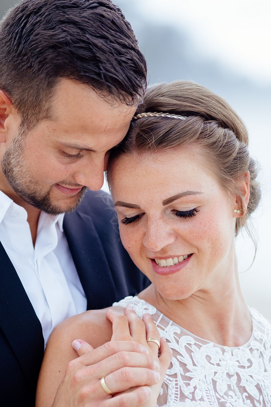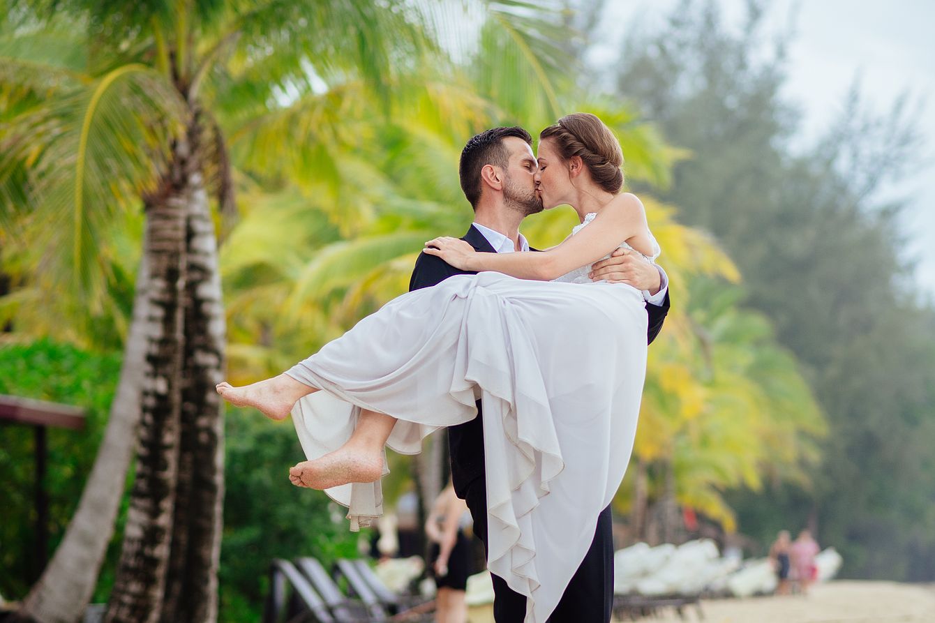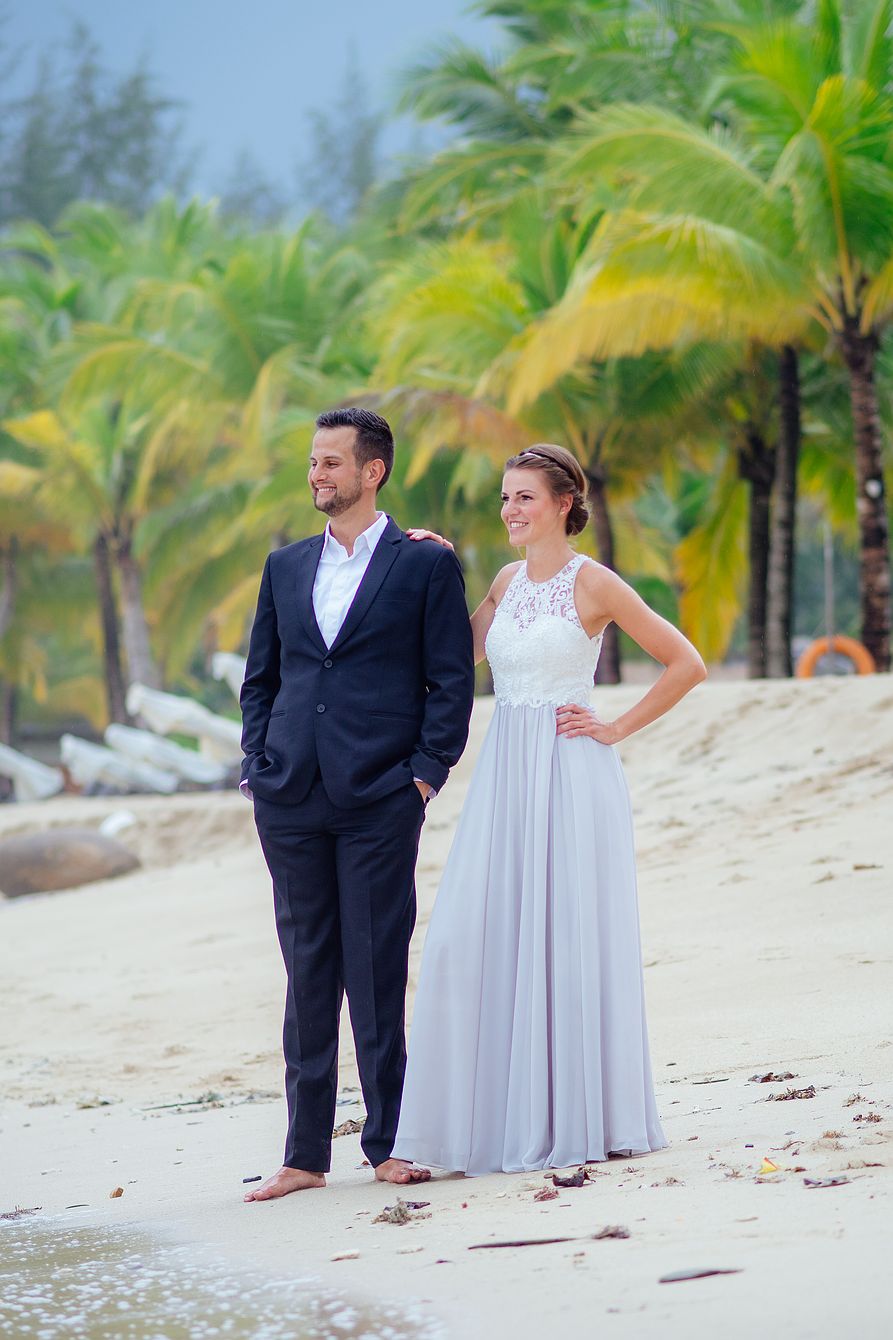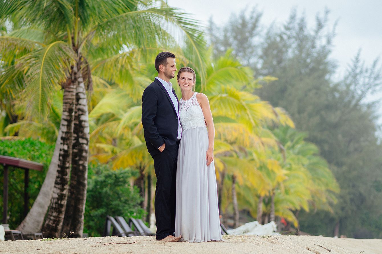 We once again had the pleasure of returning to our old home away from home in Khao Lak, where we had lived just across from the Beyond Resort for almost two years. It was a true delight to accompany this wonderful couple during their honeymoon at the same resort, capturing their special moments with our cameras. Of course, they had brought their wedding attire with them, and we met this stunning couple early in the morning to begin the photoshoot. A light drizzle started right at the beginning of the session and stayed with us throughout the day. As a photographer, however, I found that the soft, diffused light created by the weather was perfect for capturing flattering, romantic images.