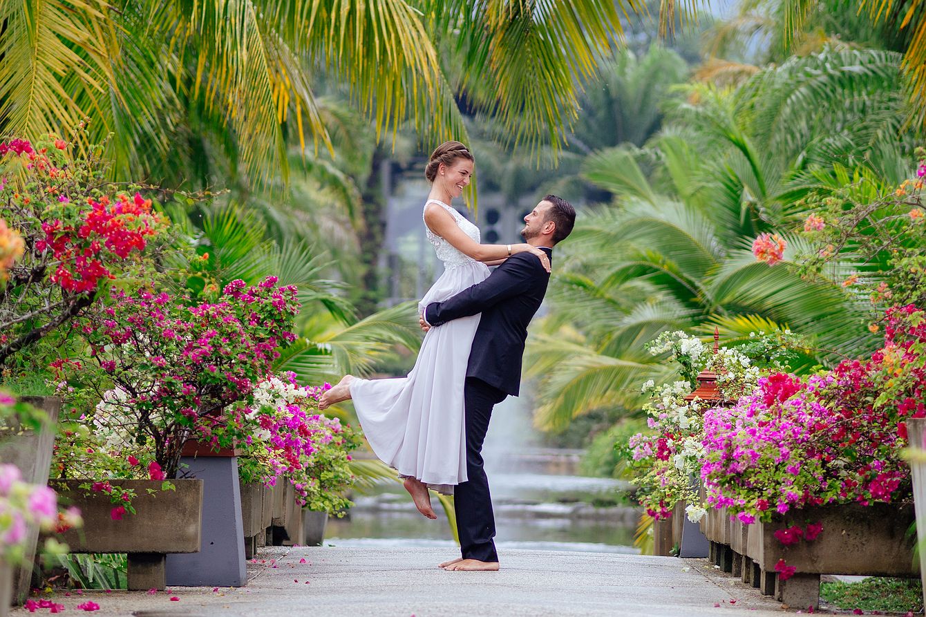 The resort’s vibrant tropical gardens provided a stunning backdrop, ensuring that even under less-than-ideal lighting, we were able to create breathtaking photos filled with color and life. From intimate close-ups to sweeping shots of the lush surroundings, the day was full of magical moments that perfectly reflect the romance and charm of Khao Lak. Scroll through to see some of our favorite images from this unforgettable shoot!