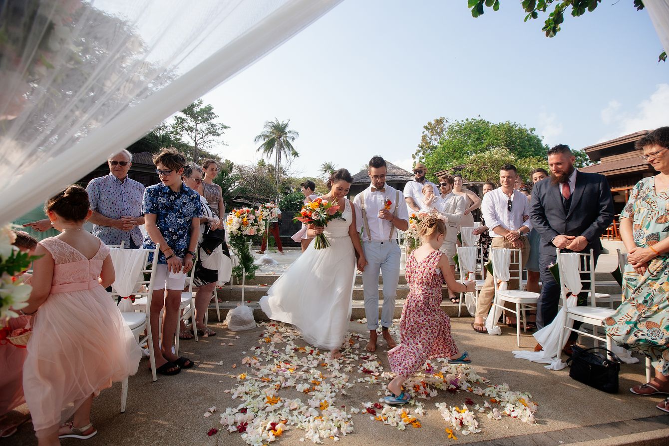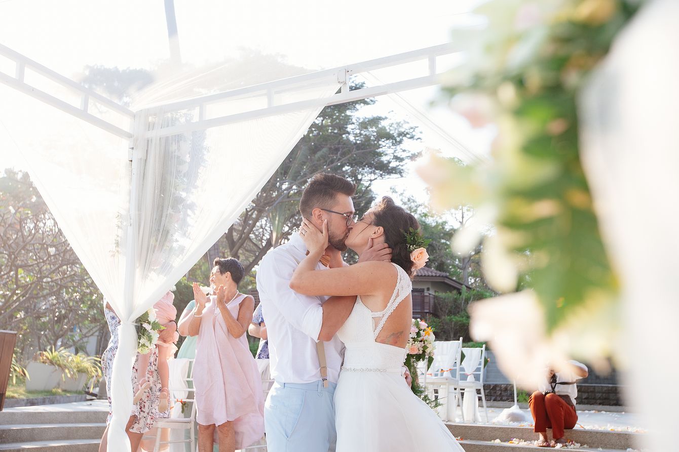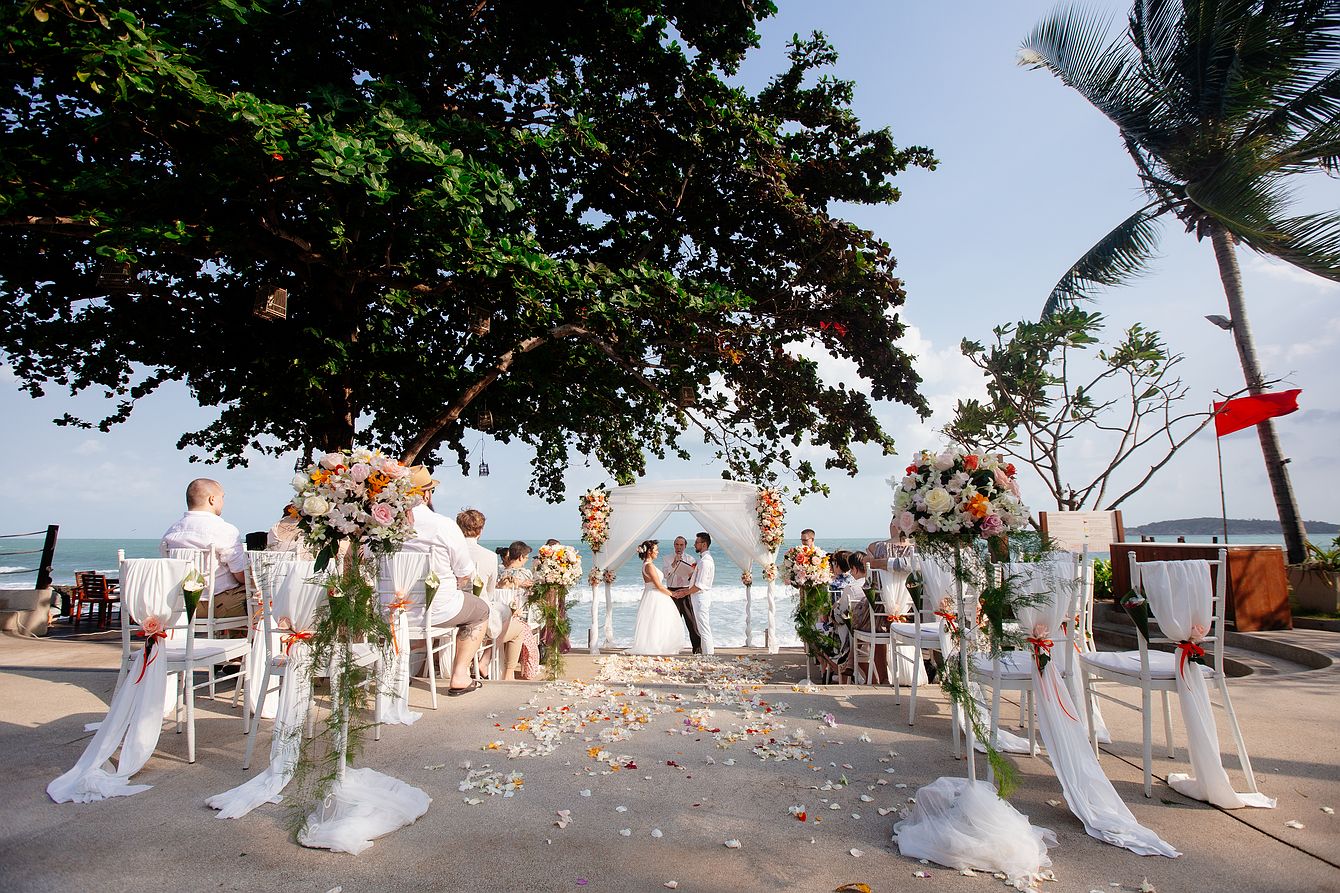 We are delighted to share another beautiful wedding from February 2020 on Koh Samui. The lovely couple reached out to us via email more than a year and a half before their desired date, eager to explore the possibilities of a wedding in Thailand. The adventurous couple wanted to embark on a world tour before their wedding, so planning had to start early. It didn’t take long to find the perfect wedding venue on Koh Samui, which they promptly booked for their big day. With the location secured, they could focus on their travel adventures while we began planning and organizing their wedding behind the scenes.