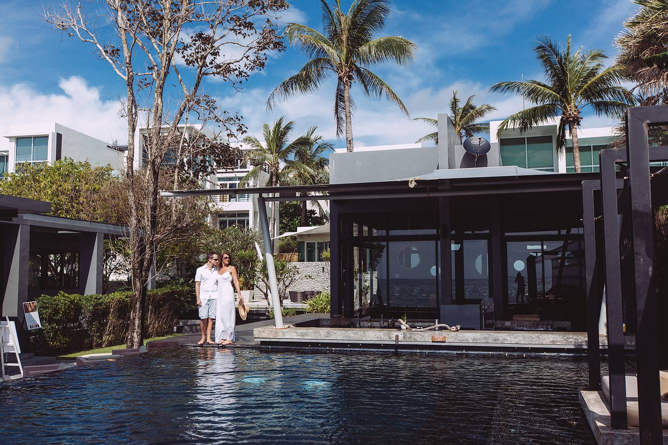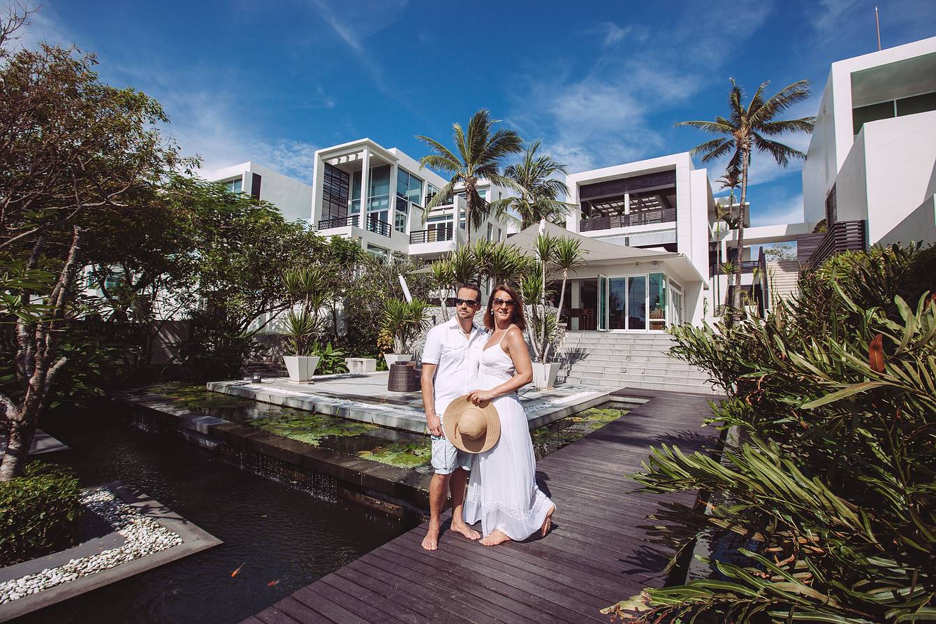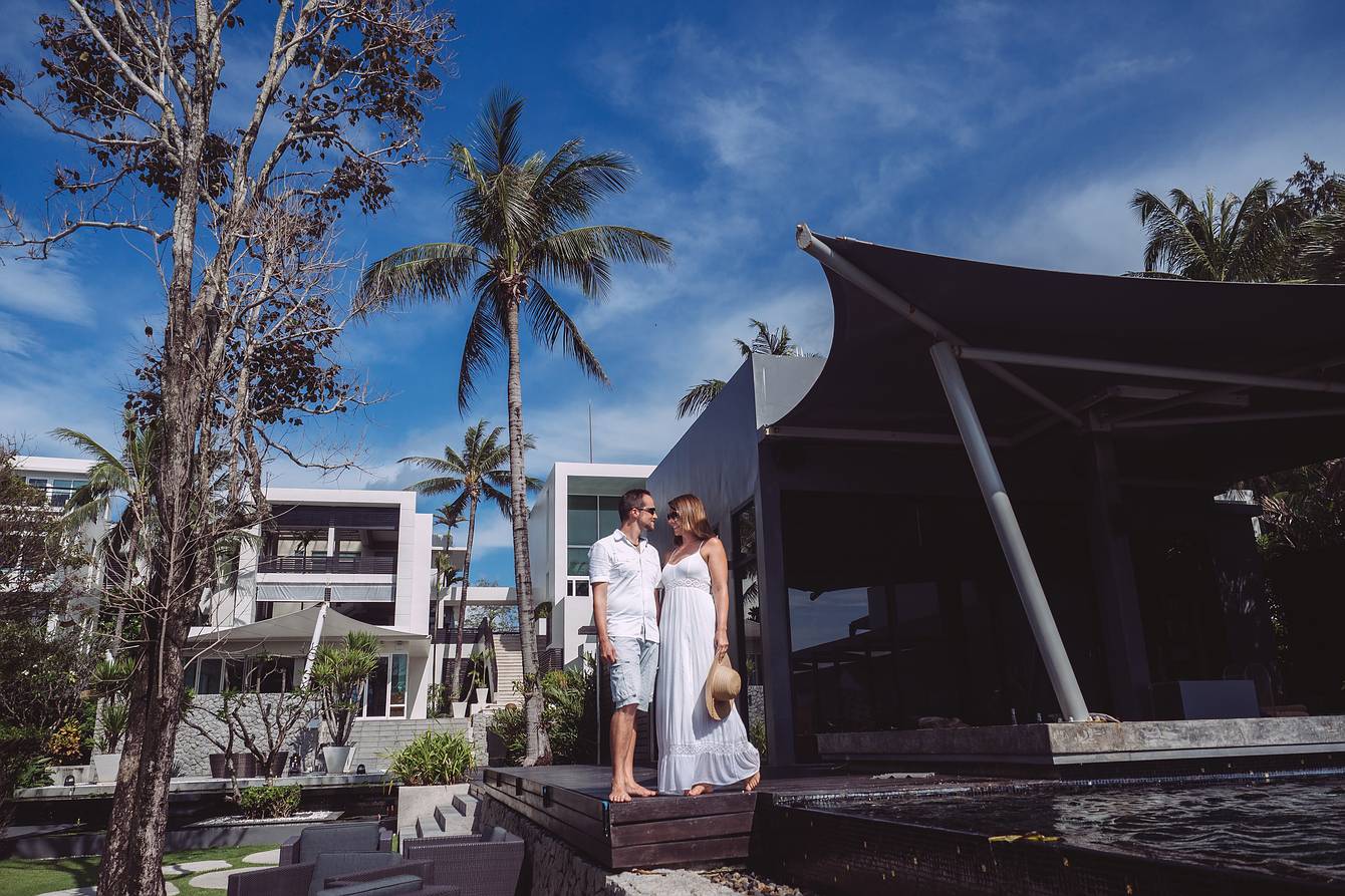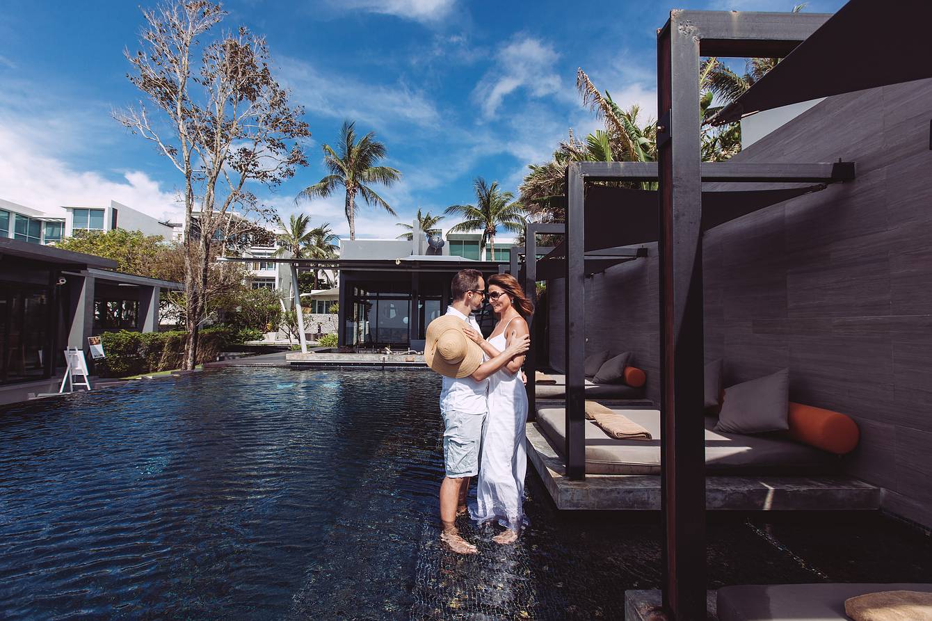 During our time on Koh Samui, we also visited several resorts to explore new wedding locations, forged valuable contacts, and, of course, did some photography along the way. On our way back to the mainland and towards Khao Lak, we made a short stop in Phuket for a booked couple’s photoshoot. Our destination was the luxurious boutique beach resort Aleenta Phuket Resort & Spa, located on the stunning Natai Beach.