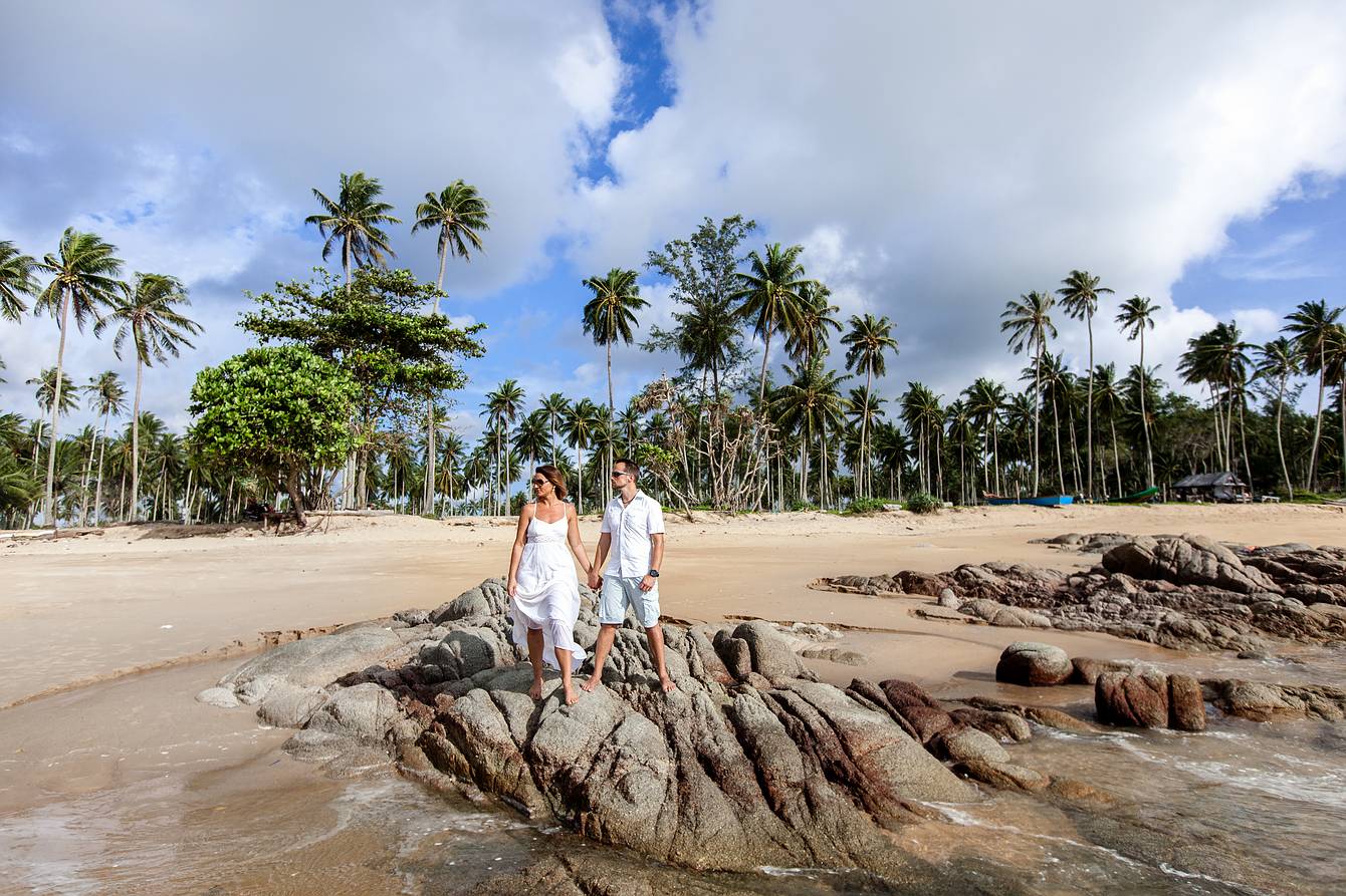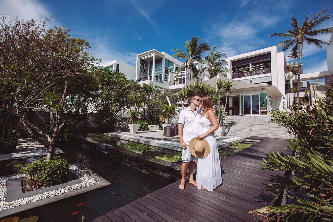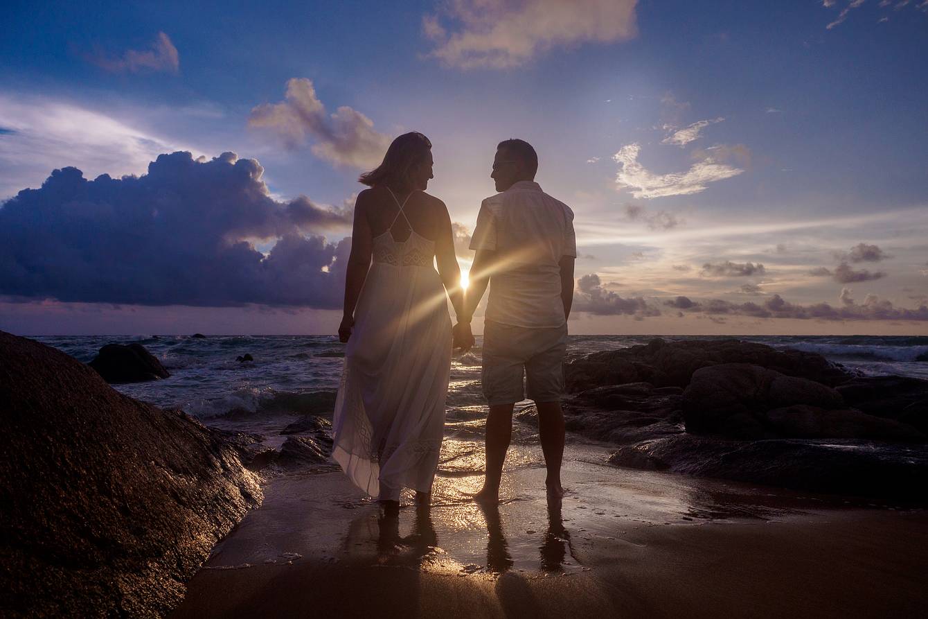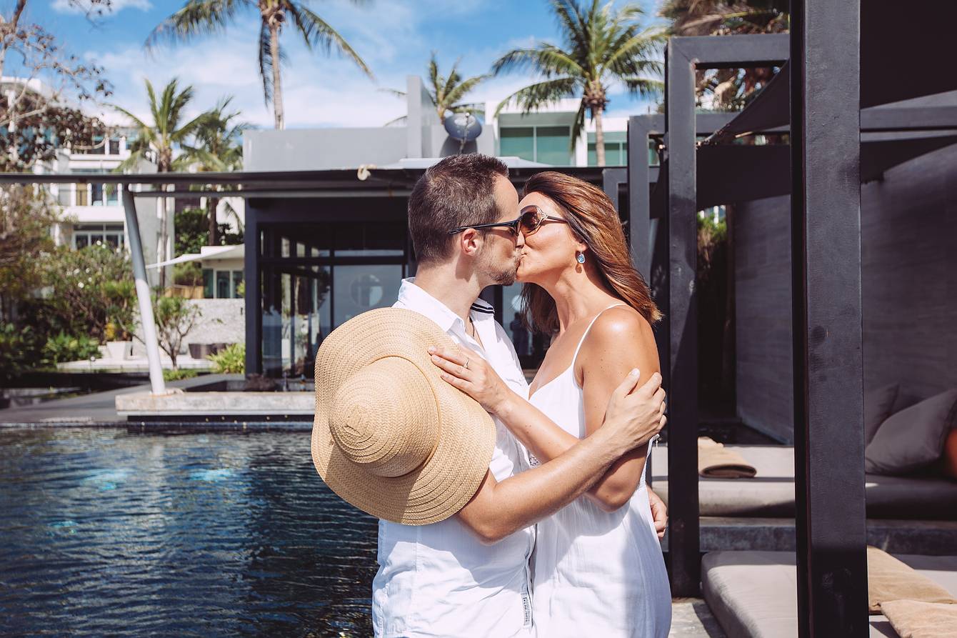 During our time on Koh Samui, we also visited several resorts to explore new wedding locations, forged valuable contacts, and, of course, did some photography along the way. On our way back to the mainland and towards Khao Lak, we made a short stop in Phuket for a booked couple’s photoshoot. Our destination was the luxurious boutique beach resort Aleenta Phuket Resort & Spa, located on the stunning Natai Beach.