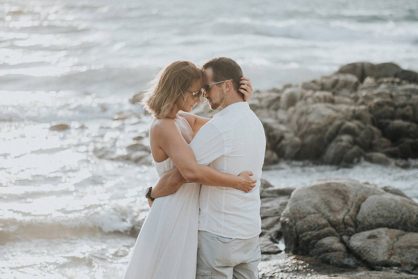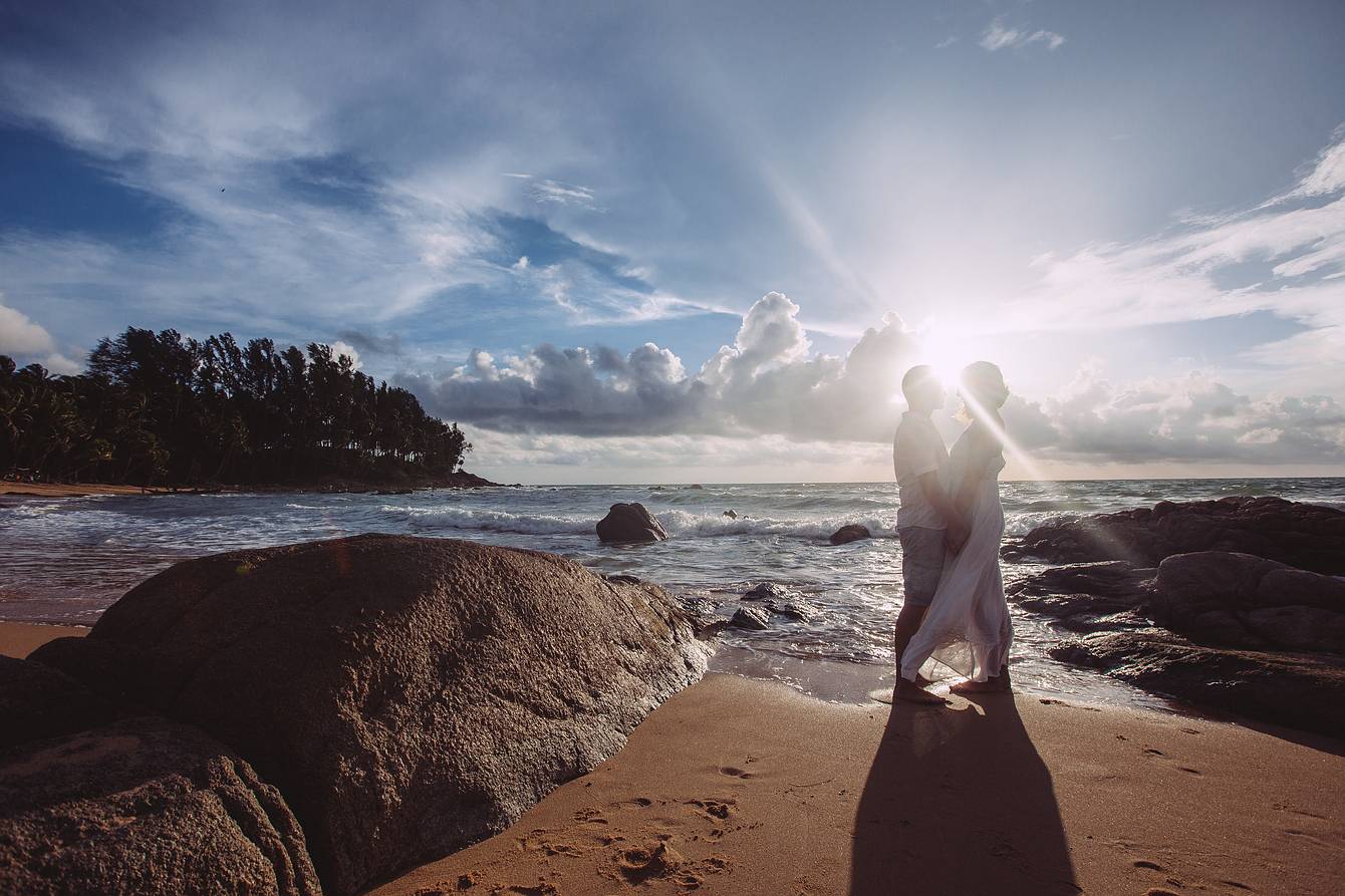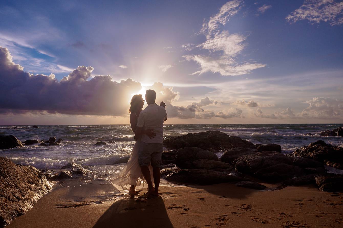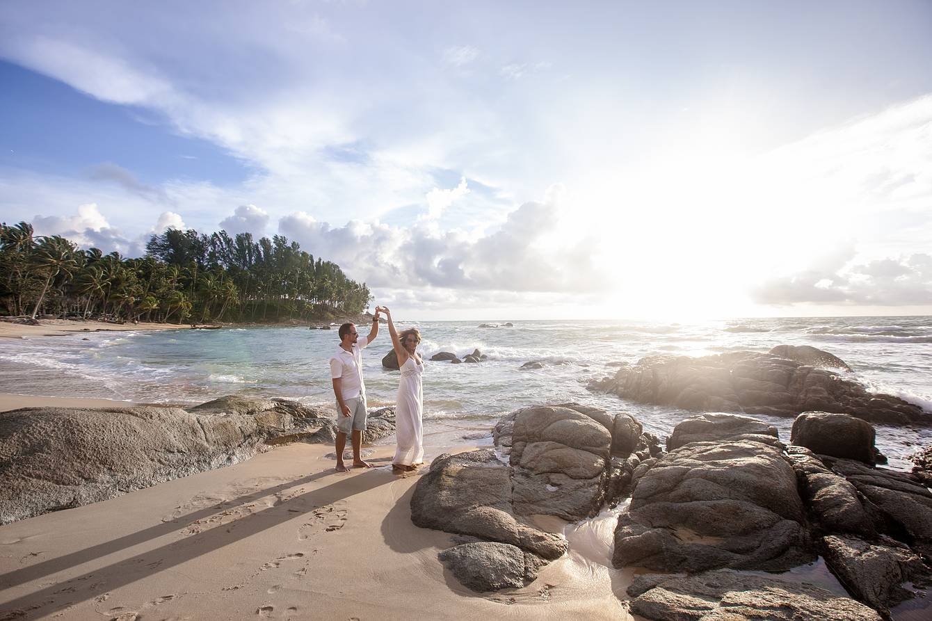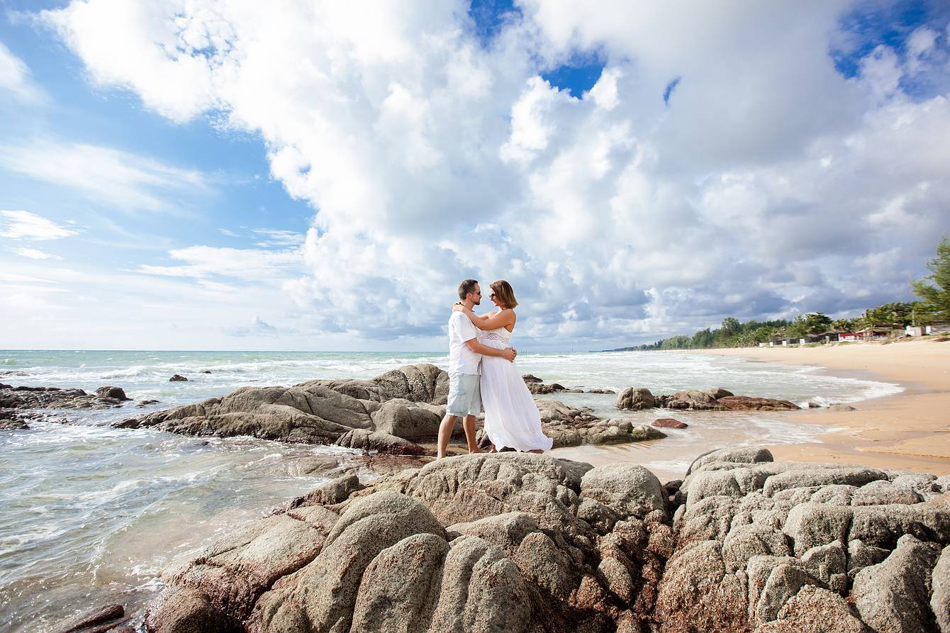 Later, we drove to a beach section about two kilometers away, where small rock formations created a spectacular natural backdrop—ideal for the next part of our photoshoot. Every moment captured here reflects the elegance, romance, and tropical beauty of Phuket, making it an unforgettable experience for both the couple and our cameras.