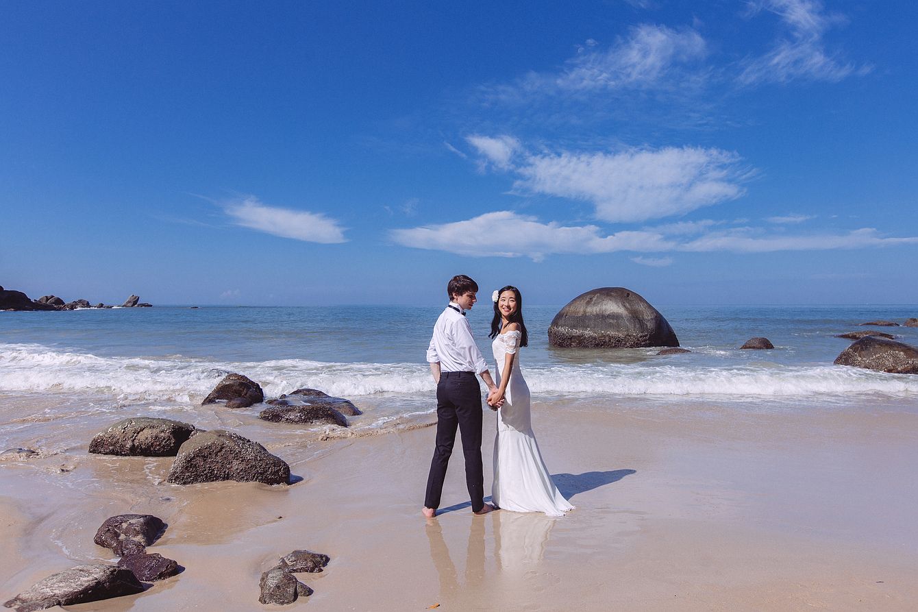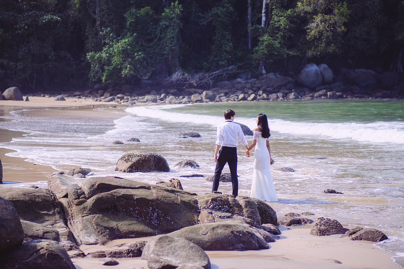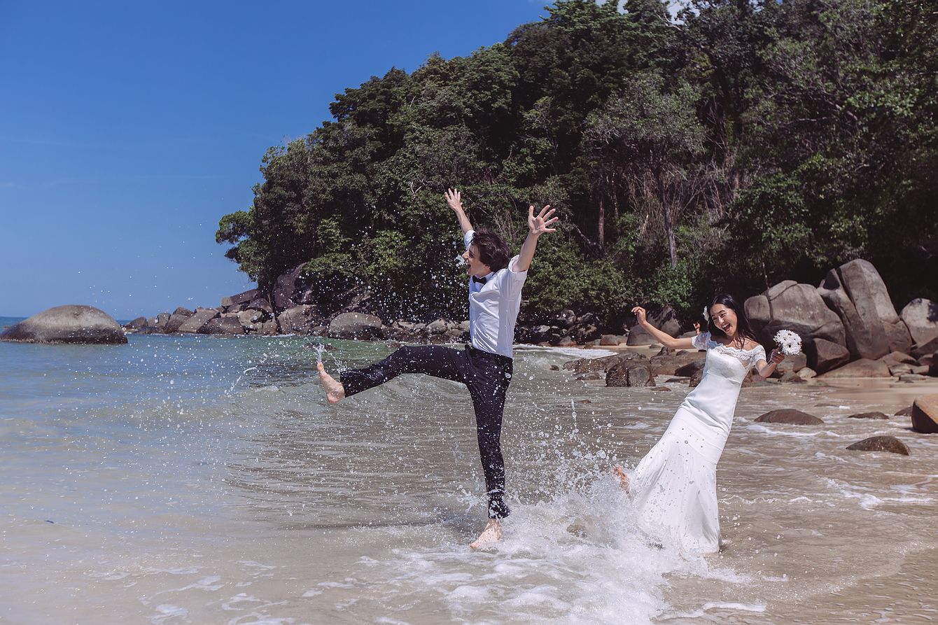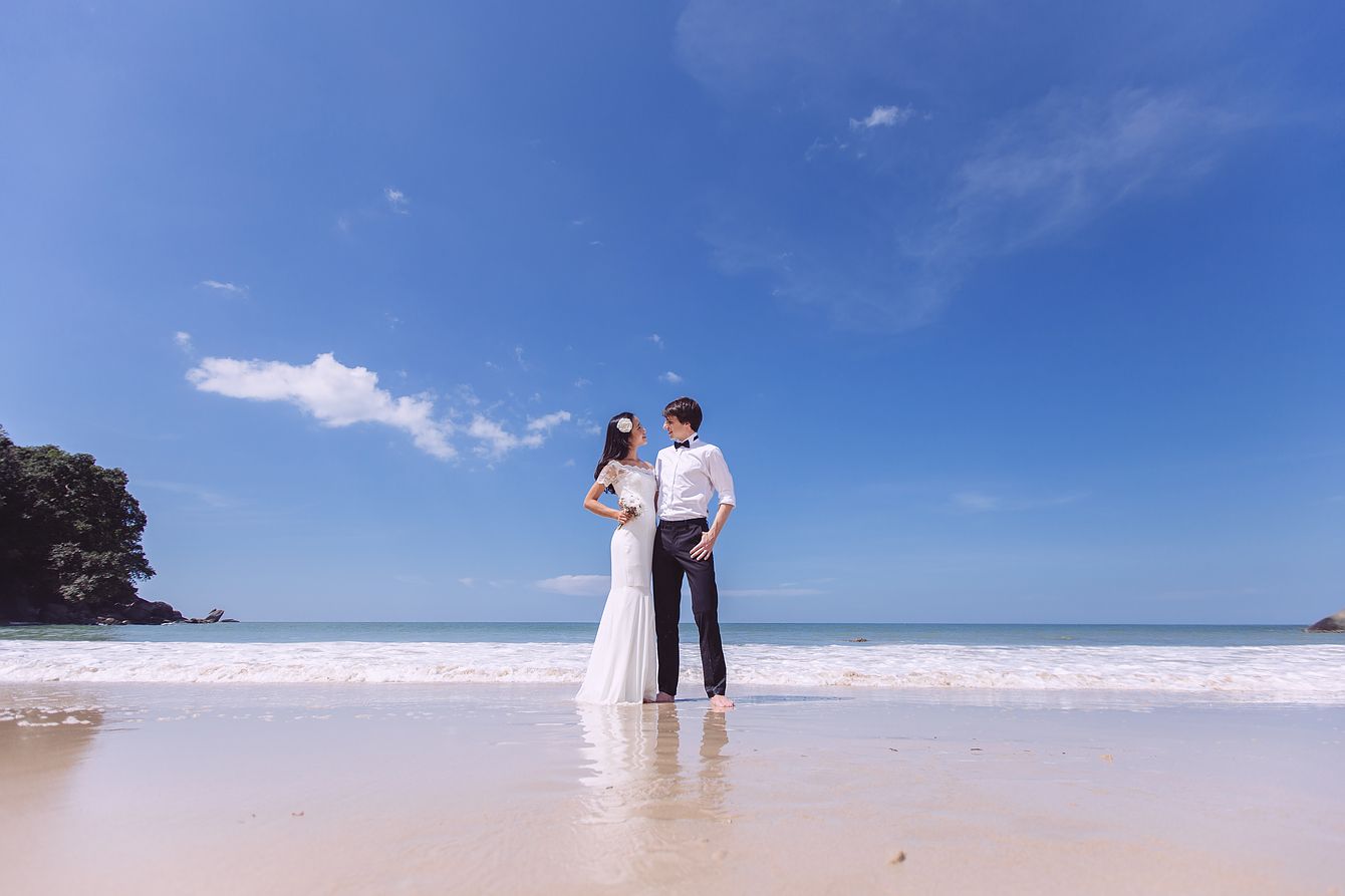 We returned once again to Small Sand Beach, one of the most stunning locations in Khao Lak, to photograph a wonderfully charming young couple from Japan. With the sun shining brilliantly, endless blue skies, and crystal-clear water framed by striking rock formations, this beach is truly a photographer’s paradise. Its serene atmosphere and natural beauty make it the perfect backdrop for capturing romantic and unforgettable moments.