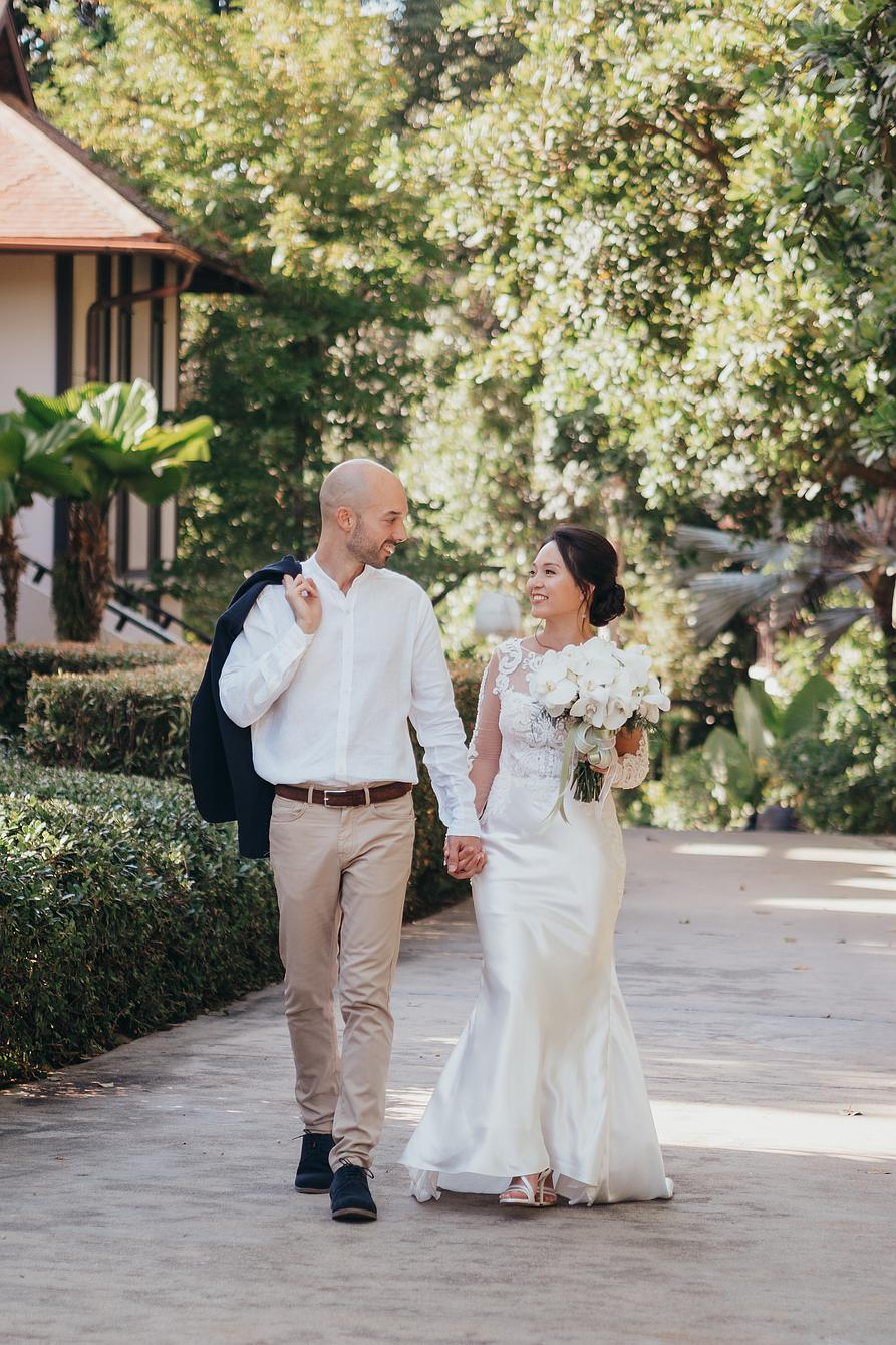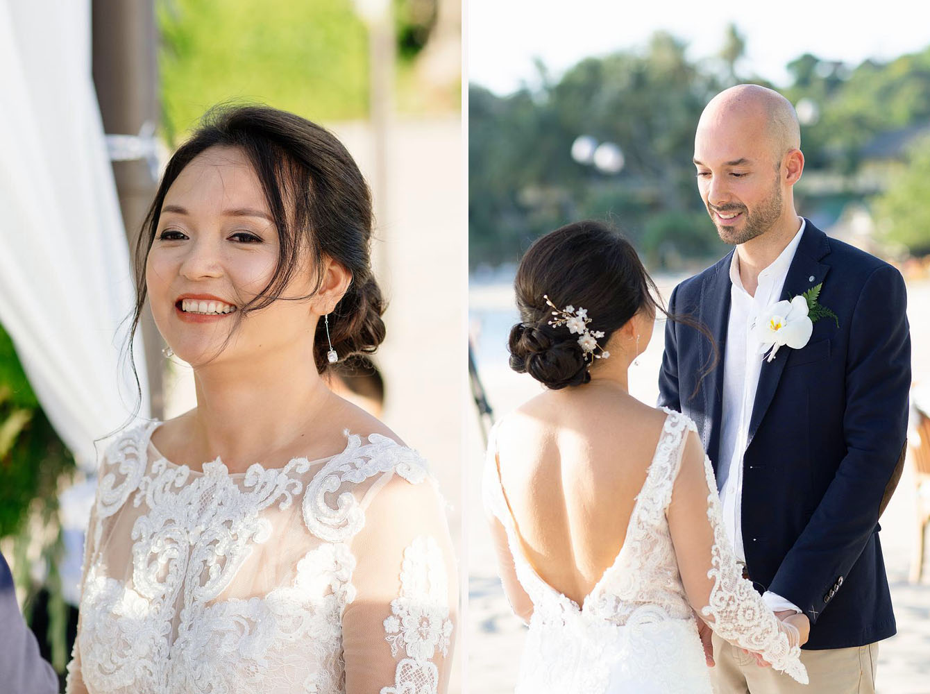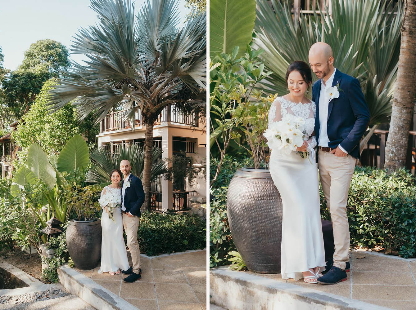 We are delighted to share another beautiful beach wedding we had the pleasure of capturing on the stunning island of Koh Lanta. The young and charming couple chose to stay in one of the resort’s signature Hillside Ocean Pool Villas, enjoying an intimate celebration with their closest family members. These luxurious villas are nestled among lush tropical hills, 60 to 80 meters above sea level, offering breathtaking views of the serene Kantiang Bay and the expansive ocean. True to Koh Lanta’s reputation, the weather was absolutely perfect, with an endless blue sky providing a stunning backdrop for the wedding on an almost deserted beach. Before exchanging their vows in the warm glow of the evening light, we captured the first wedding photos of the couple in the resort’s beautiful gardens. Once again, our incredible video team led by Khun Man from Phuket was on hand to record every unforgettable moment of the day.