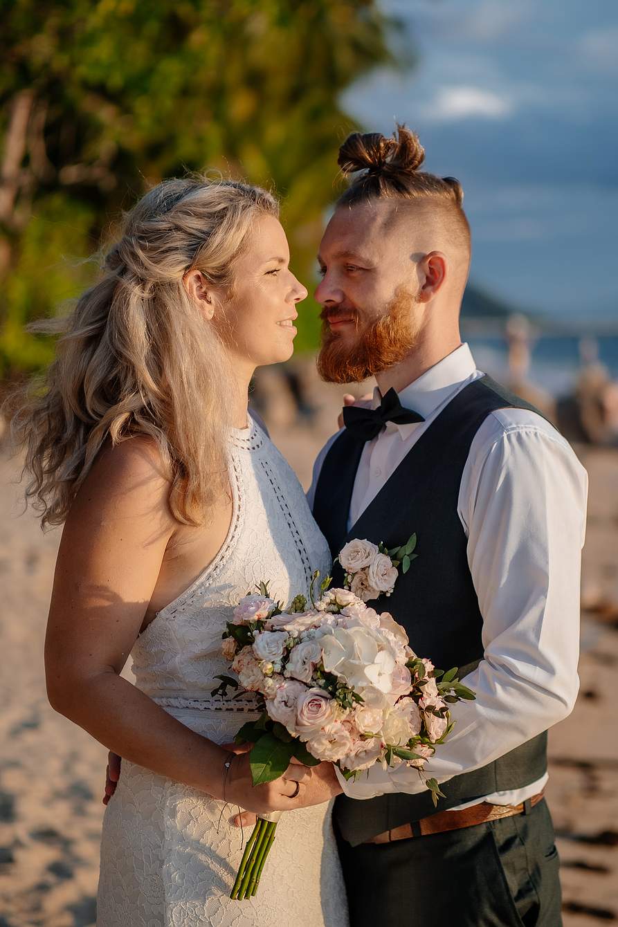 On Koh Samui’s Sunset Beach, you’ll discover a rare sense of tranquility. While the beach isn’t completely deserted, its idyllic location on the peaceful west coast ensures a calm and intimate atmosphere. Here, you and your partner can fully embrace the beauty of the moment, savoring every heartfelt vow, every loving glance, and every kiss as the sun sets in vibrant colors. An elopement wedding allows you to leave the stress of a big celebration behind and focus on what truly matters: two hearts uniting in a place that feels like your own piece of paradise.