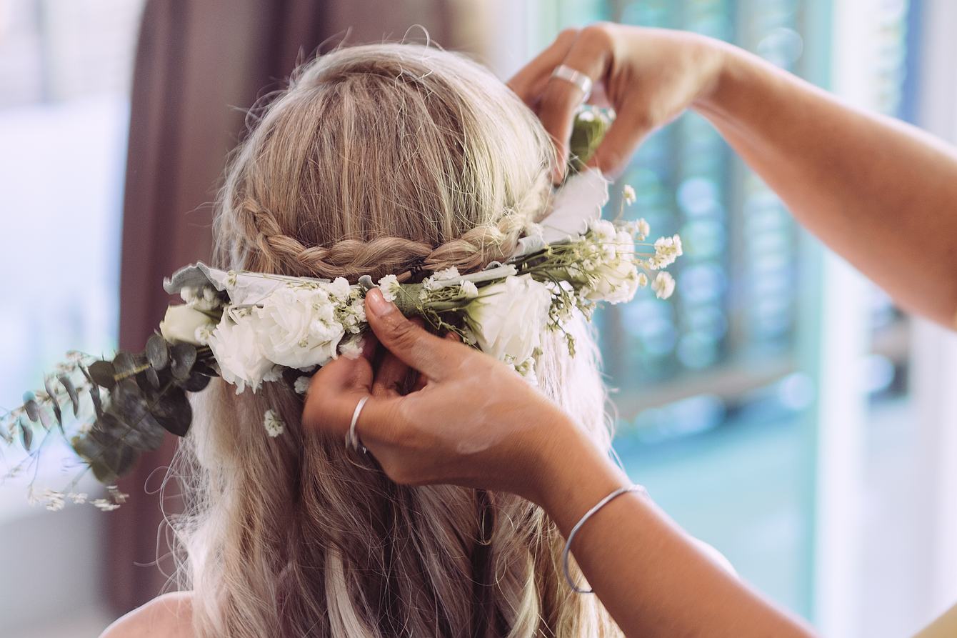 After spending the night in Ao Nang, we traveled by longtail boat to the famous Railay Beach, where we met the lovely couple celebrating their wedding with an intimate gathering of family. We photographed them during the preparations, capturing all the little details that make a wedding truly special. Later, we headed by private longtail boat to the slightly more secluded Ao Phra Nang Beach.