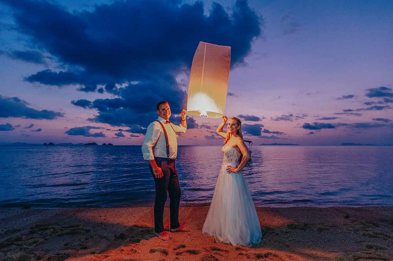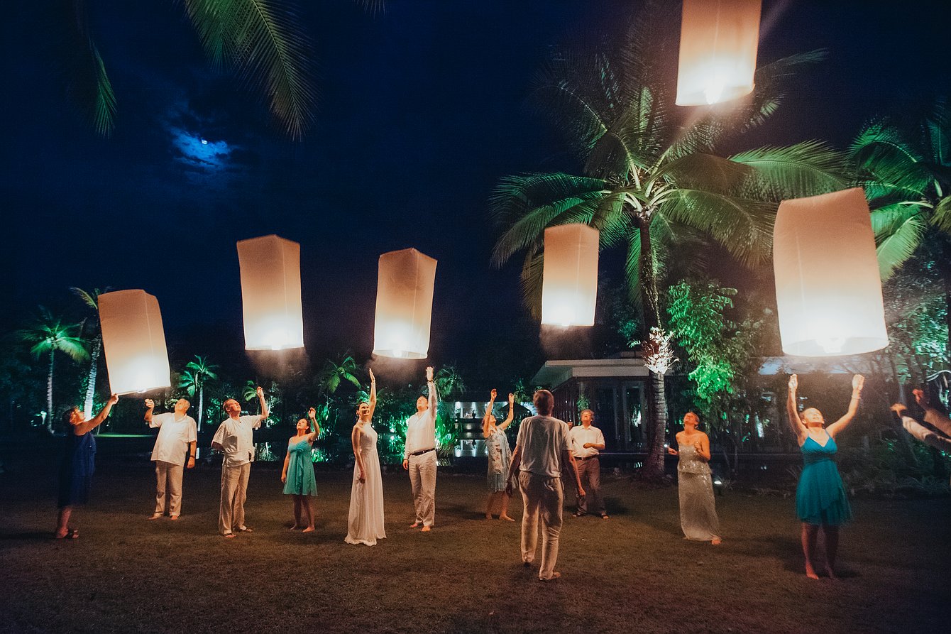 Furthermore, the release of sky lanterns is strictly prohibited by local authorities on the island of Koh Samui. All of the villas we offer as wedding venues also have a clear ban on sky lanterns.