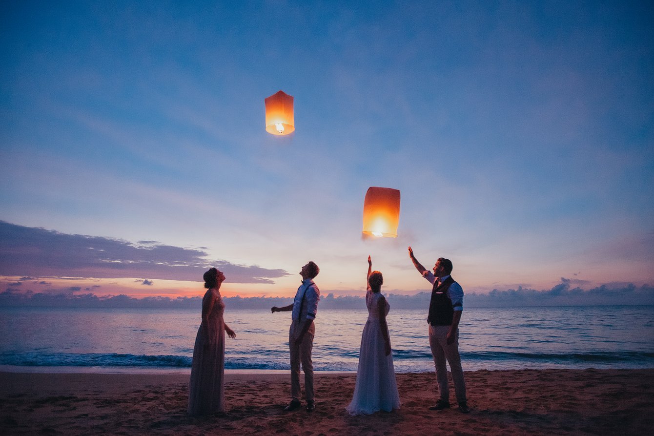 In 2005, around 5,000 sky lanterns were released on the beach in Khao Lak in memory of the victims of the devastating tsunami. For years, it was a common sight to see couples at sunset, sending sky lanterns into the sky as a symbol of hope and love. Sky lanterns have also been a beloved tradition at weddings, creating magical moments and unforgettable photo opportunities.