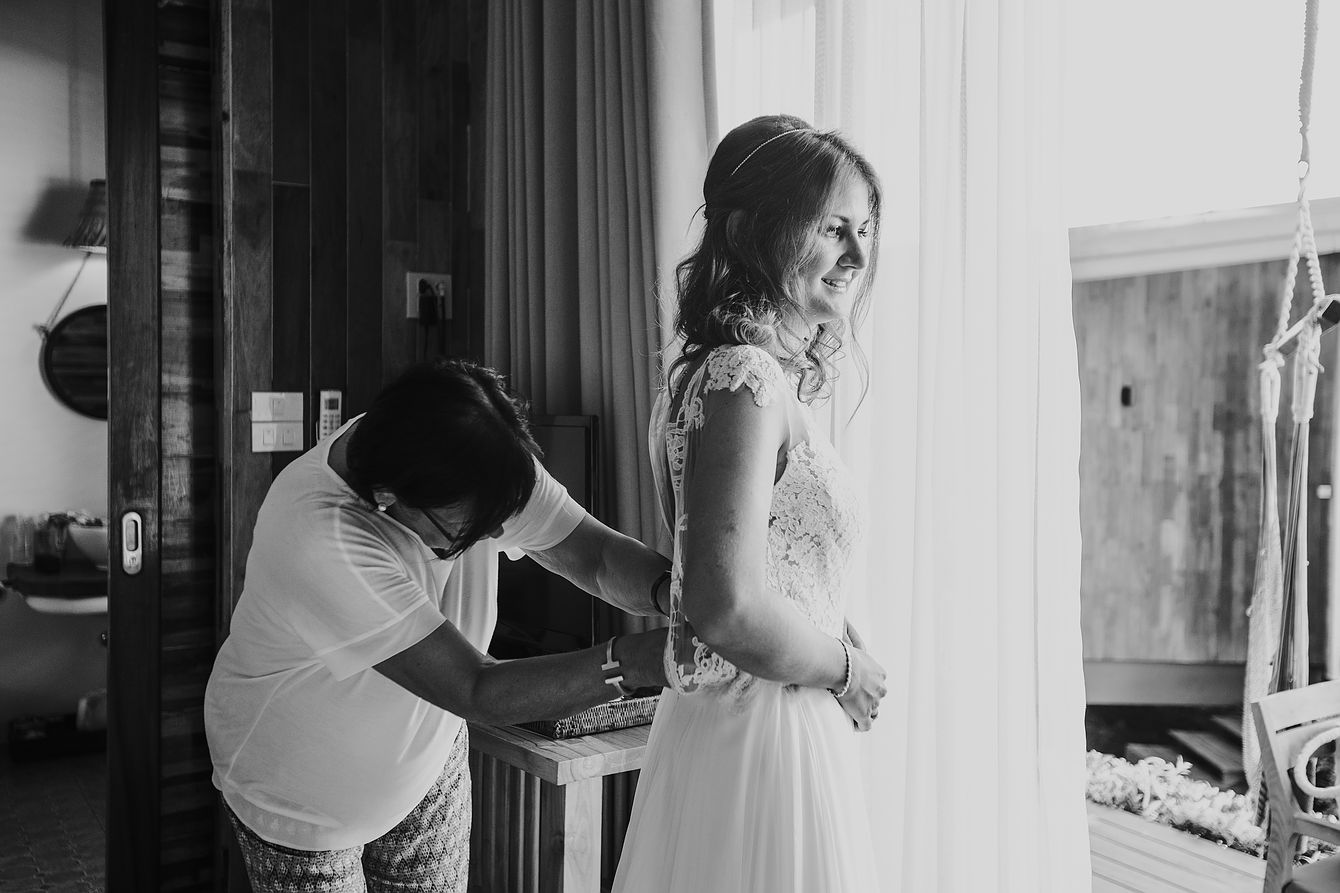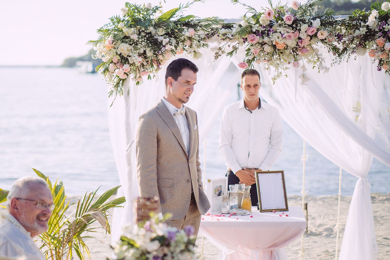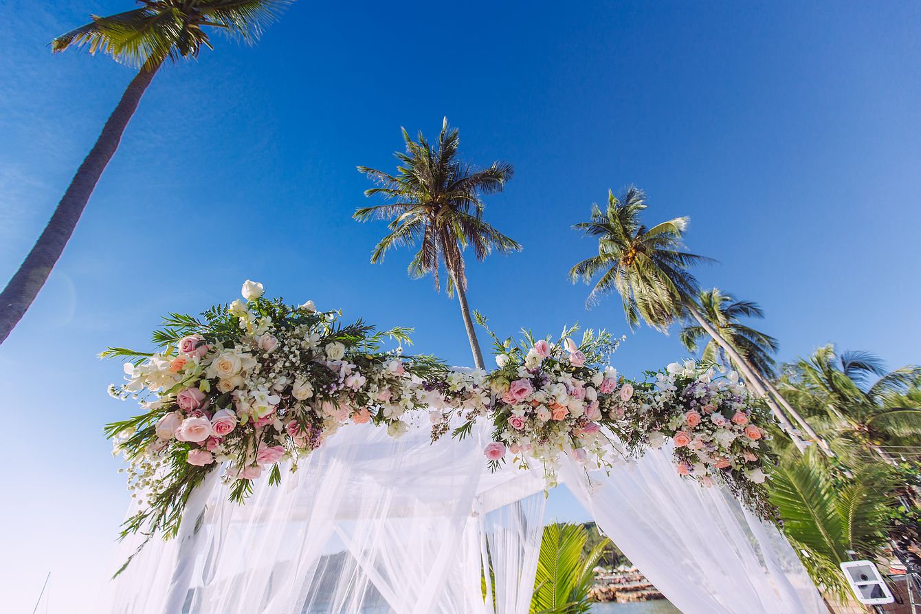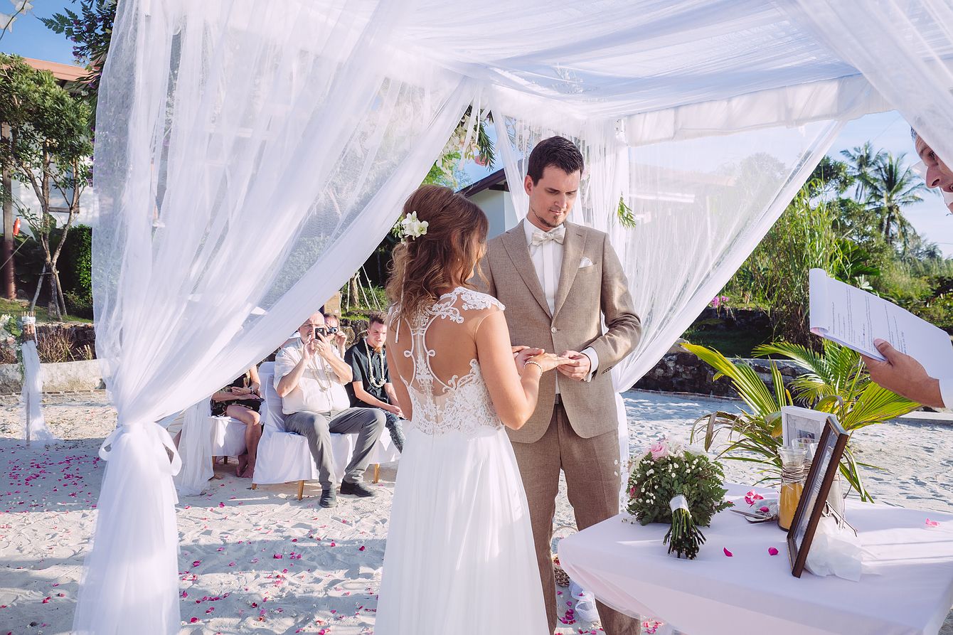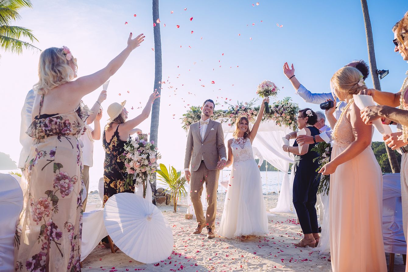 We have had a refreshing and creative few weeks of planning and organizing, and we are proud to show you pictures of Ines & Andreas’ beach wedding on the Thai island of Koh Kood. It all started when Andreas emailed me a little over a year ago asking if I could help him plan and organize his wedding in Thailand. I was happy to oblige, and our initial discussions focused on finding the right venue and the perfect wedding location in Thailand. The chosen location had to be perfect for the upcoming wedding celebration, but also offer added value in terms of a vacation before and after for the bride and groom and their wedding party. After careful consideration, the tropical idyll of Koh Kood emerged as the ideal destination, and we were able to begin selecting a suitable resort. Here, too, we found what we were looking for quite quickly and decided on the To The Sea Resort, which we had already gotten to know during a previous wedding on Koh Kood. For the floristry and decoration, as well as for coordinating the entire event, we were once again able to enlist the help of our long-standing partner Bangorn Chitharoon from Koh Chang. Once again, Bangorn from Koh Chang Beach Wedding and her team did an excellent job and also ensured on site that all documents for a legally valid wedding in Germany were submitted to the relevant authorities in a timely manner. In December 2017, the big day finally arrived. You can now see pictures of the joyful wedding celebration here on our website.