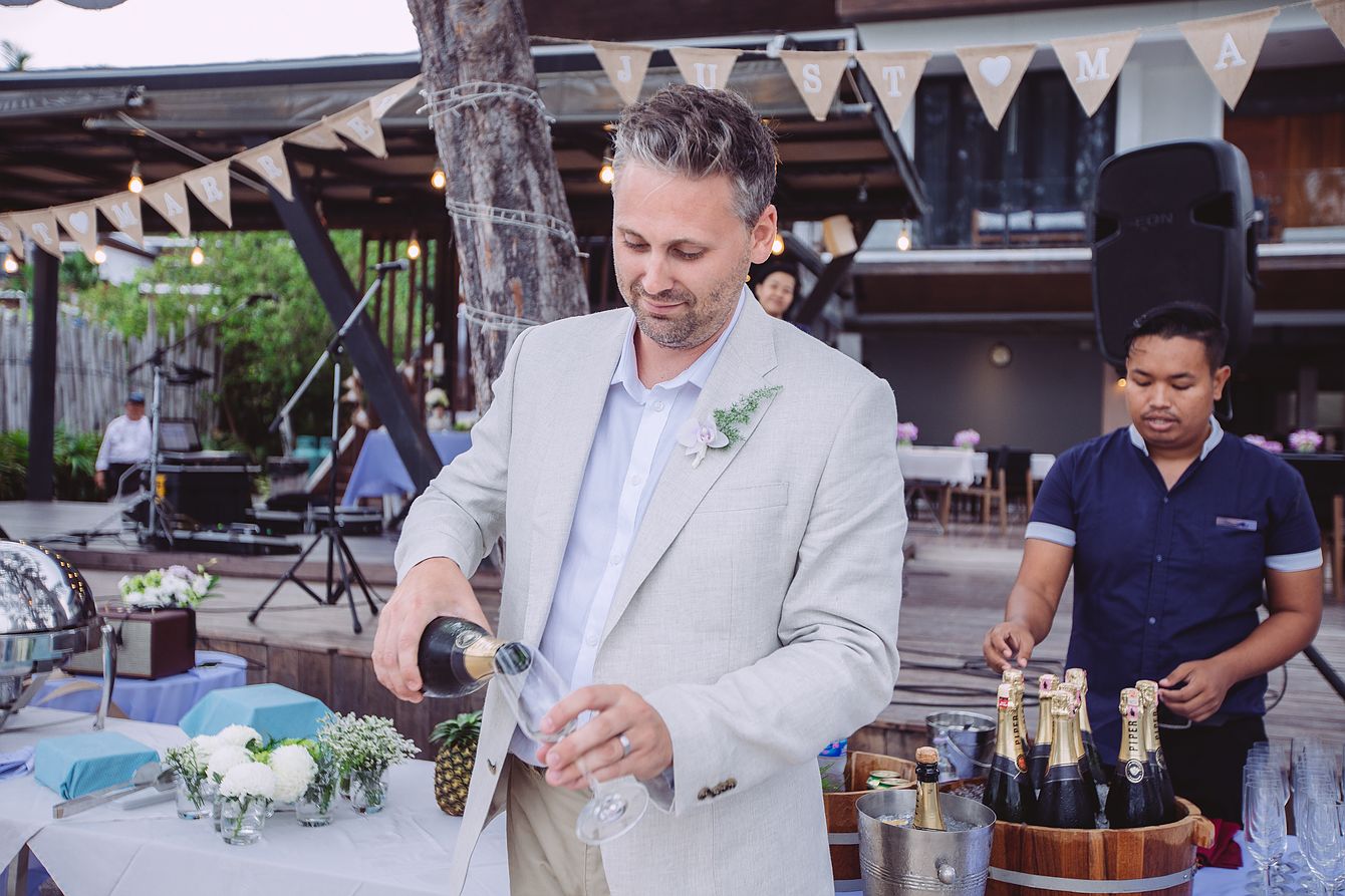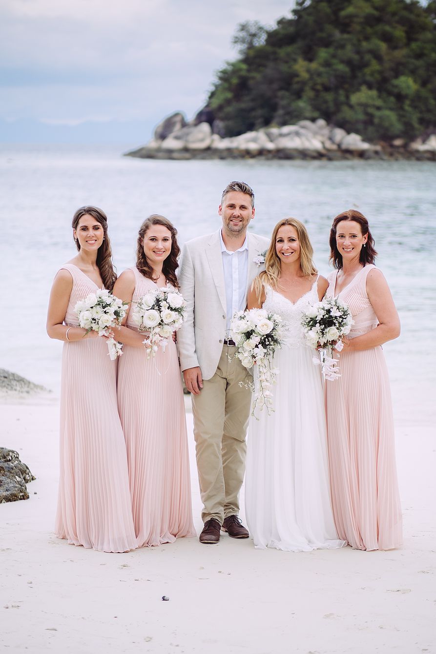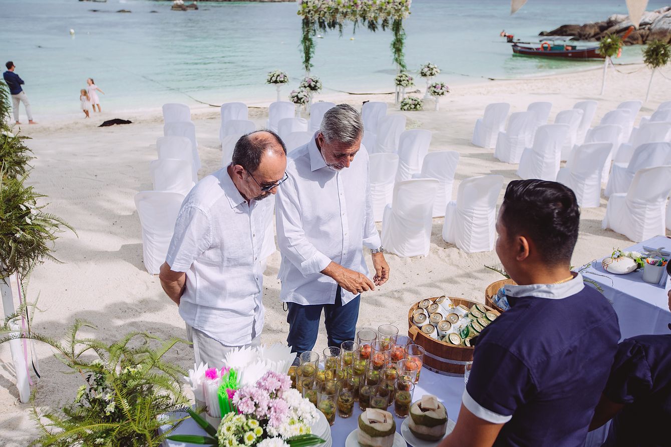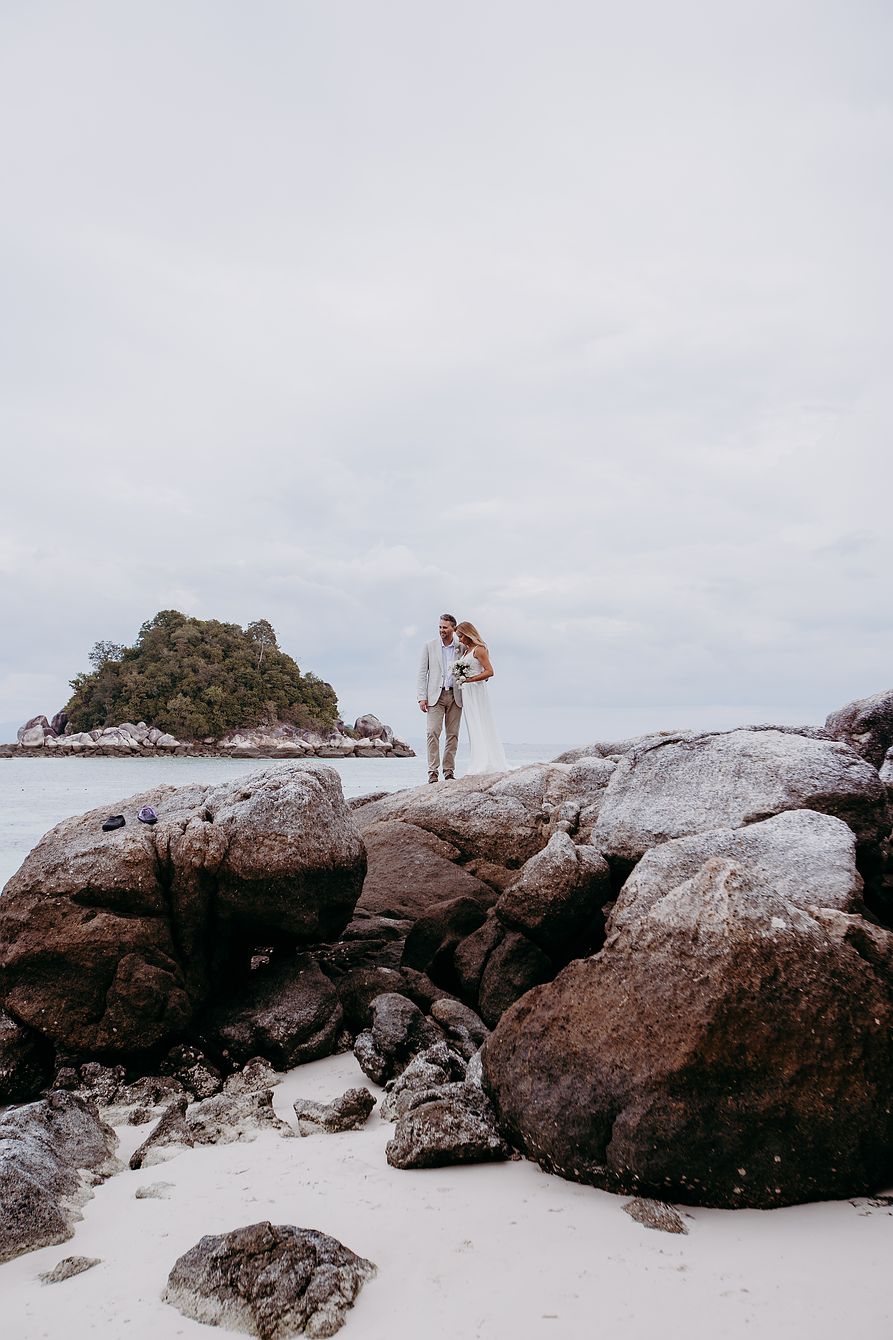 The tranquil island is only four and a half square kilometers in size and part of Tarutao National Park. We treated ourselves to the luxury of arriving two days before the wedding to explore the island. On the second day, we spontaneously booked a short trip on a longtail boat to visit a neighboring island in the national park. Although we didn’t spend much time on the island, we really liked Koh Lipe. We were also impressed by the beautiful Walking Street with its numerous restaurants, bars, and souvenir shops. Day 3 was finally wedding day. The bride and groom and their wedding guests were staying at the Idyllic Concept Resort. The wedding preparations were already in full swing when we arrived at the resort. The Western wedding ceremony took place right on the resort’s beach, followed by a touching Buddhist water blessing. It was a great pleasure to accompany Amber and Sam’s wedding with our camera, and we are looking forward to returning to this beautiful island very soon. If we have sparked your interest in a wedding on Koh Lipe, we look forward to hearing from you to discuss your wedding plans together.