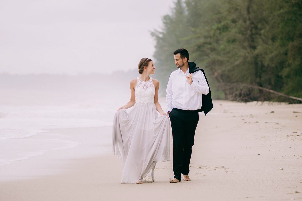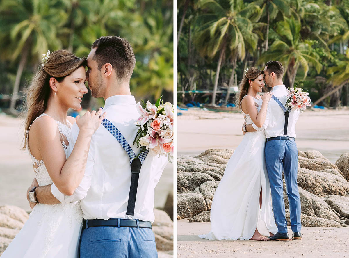 We also had the pleasure of photographing this wonderful couple on a secluded beach in northern Phuket. They stayed at the nearby Aleenta Resort and even brought their wedding attire all the way from Germany to capture romantic beach wedding photos here in Thailand. The beautiful bouquet used for the shoot was specially arranged by our florist in Khao Lak.