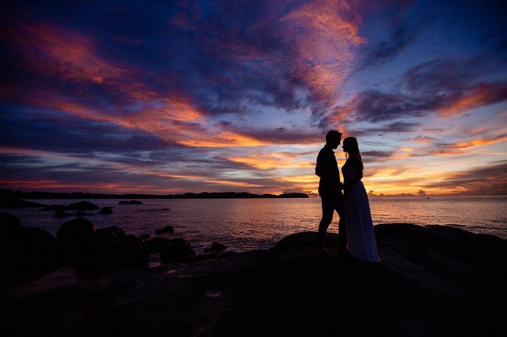 We captured this stunning wedding photo at Poseidon Beach, our favorite beach in Khao Lak. We had already spent two wonderful hours with this harmonious couple from Germany and eagerly awaited the evening light after sunset. As you can see, the wait was more than worth it, resulting in a truly magical moment.